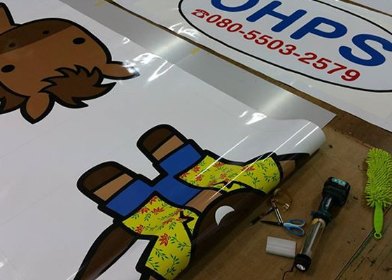 頂いたデザインデータを弊社で大判プリント → 加工 → 現場施工